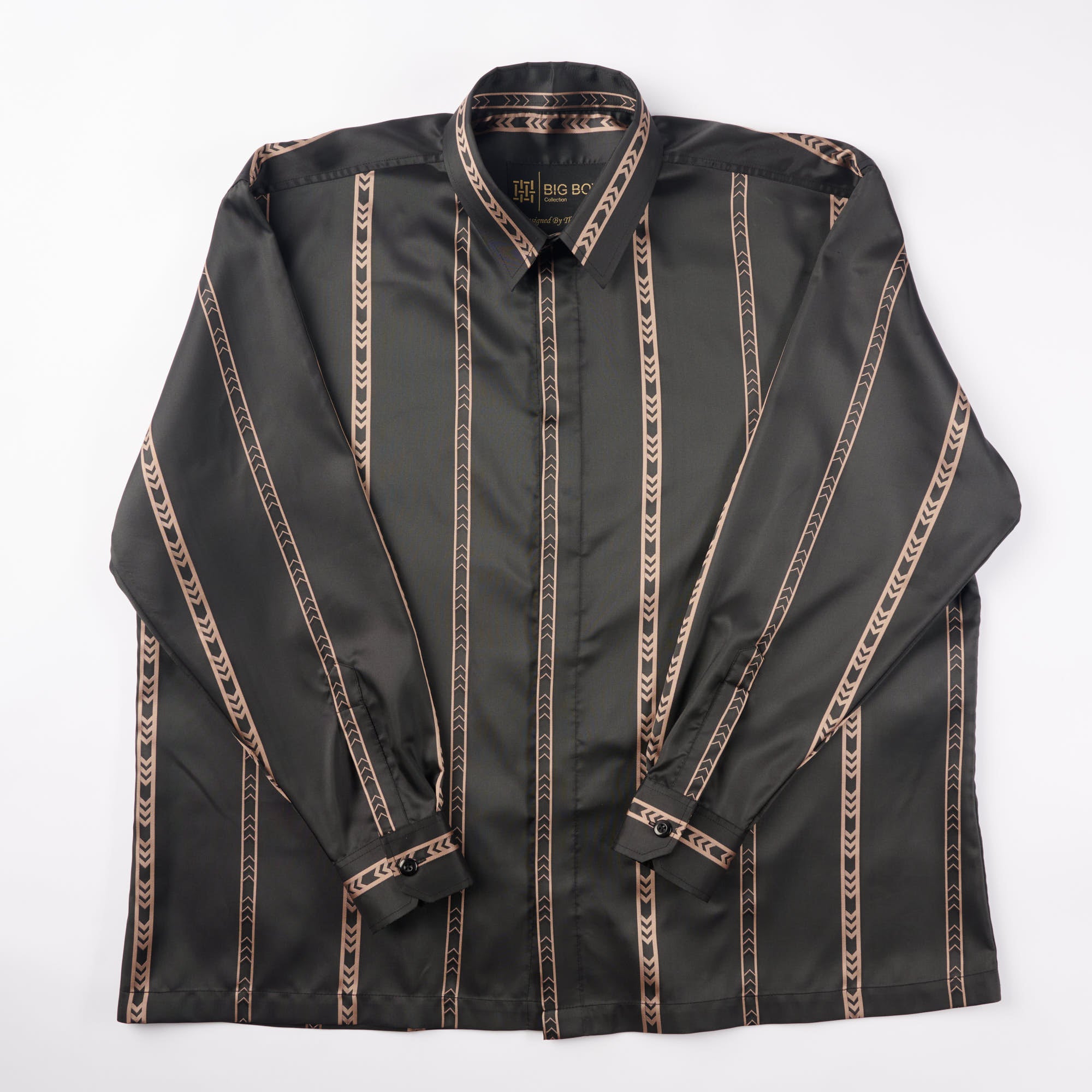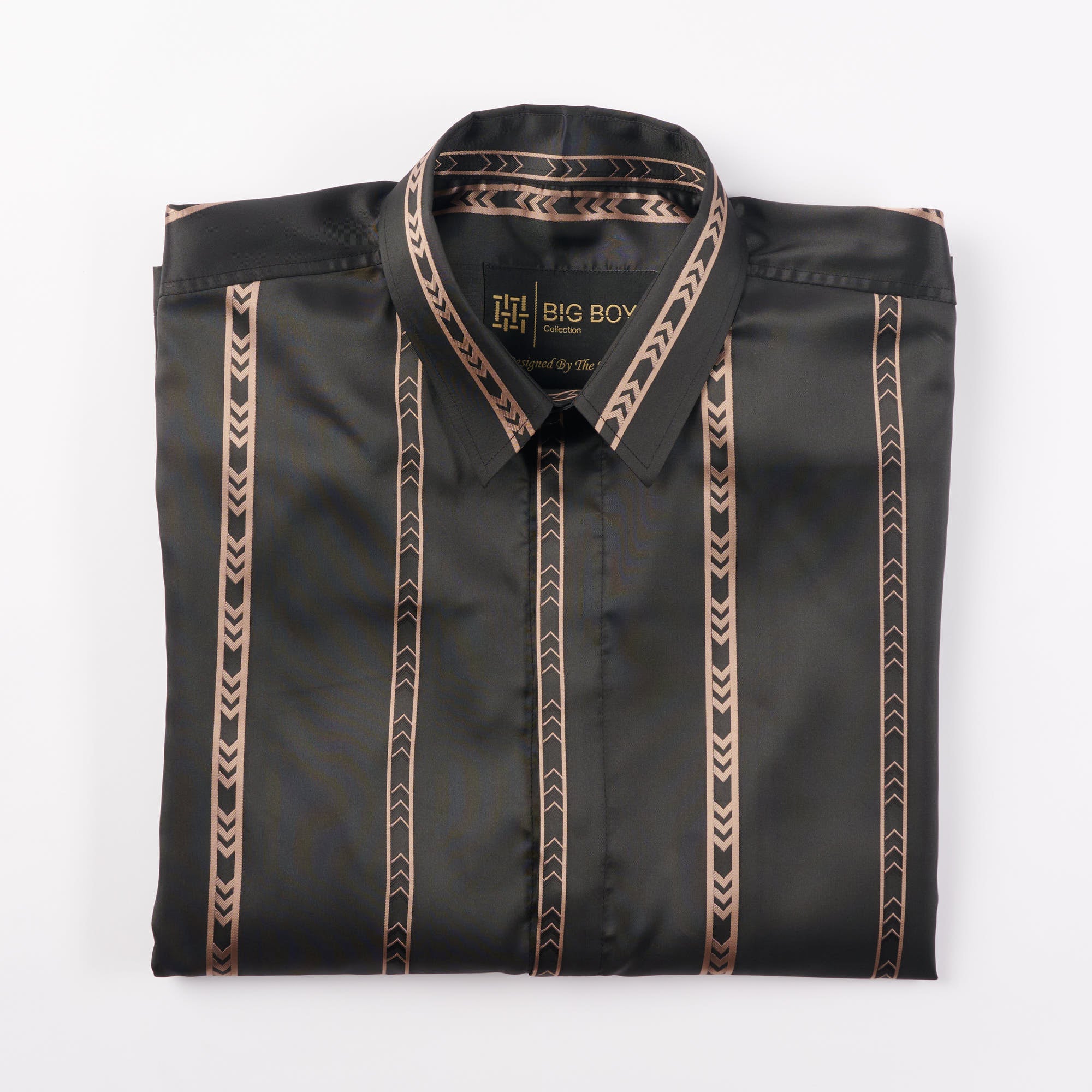 Step into sophistication with this designer-inspired shirt, crafted from 100% premium polyester. Designed with the modern plus-size man in mind, this long sleeve shirt offers both comfort and style. The sleek black fabric is adorned with an eye-catching vertical pattern, adding a touch of luxury to your wardrobe. Whether for a formal event or a night out, this shirt ensures you look polished and confident.